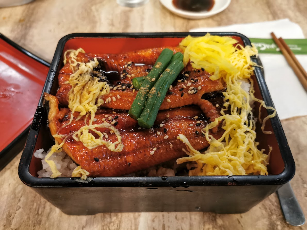 Yhtenä iltana kävimme syömässä läheisessä japanilaisessa ravintolassa. Oli tullut puheeksi se, kuinka paljon olenkaan kaivannut japanilaista ankeriasta makeahkossa kastikkeessa riisipedin päällä. Marjukka muisti, että heidän lähijapanilainen ravintola tarjoaa ankeriasta. Annos tarjoiltiin oikeaoppisesti puisesta kannellisesta rasiasta. Harmillisesti ankerias annos jäi kauaksi Japanissa syömistä annoksista. Olihan se yksi lempiruuistani Japanissa. Australialaisen unagiannoksen maku parani, kun irroittelin ankeriaan nahkaa pois. Veikkaan, että ero oli kalan laadussa. Hyvä yritys kuitenkin :)